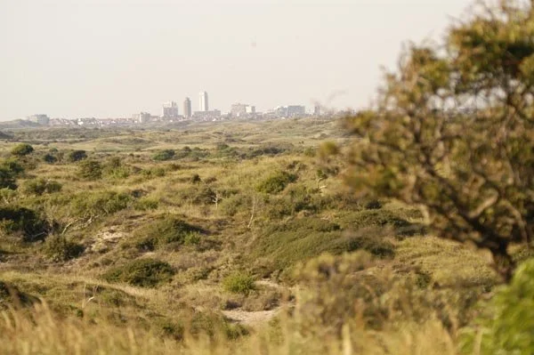 Vanaf een "hoge" duintop, de hoogste duinen zijn net 20 meter hoog, kan vanaf het zuidelijke gedeelte van het gebied ver naar het noorden gekeken worden. In de verte staan de gebouwen aan de boulevard van Zandvoort.