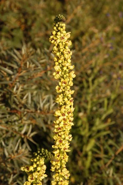 Naast het pad staat een Zwarte Toorts. Een aarvormige en langgerekte bloeiwijze. De bloemen zijn prachtig geel, de haren op de helmdraden zijn paars. Deze plant is vrij zeldzaam en lijkt op de meer voorkomende Koningskaars, die witte haren op de helmdraden heeft.
