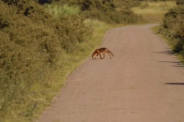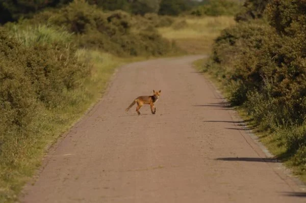 Brutaal als zij is, gaat ze gewoon door met waar ze mee bezig was. Ze verdwijnt van de weg af de duinen in.