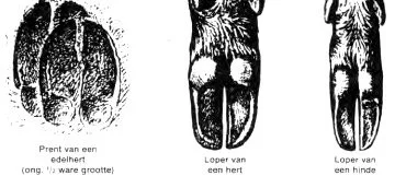 Bij vertrouwd gaand wild zullen de schelen van de linkerachterloper princies in de prent van de linker voorloper komen. Bij vluvhtig wild staan de prenten los van elkaar.